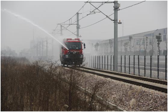 ▲ZLF5170TXFGD170型軌道消防車在軌道上行駛