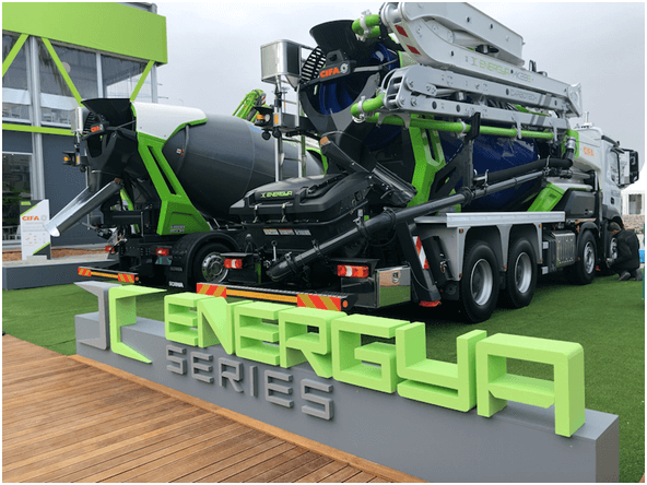 皆為CIFA本地化制造的明星產(chǎn)品,其中ENERGYA系列的MK28E攪拌布料泵車,為全球首臺(tái)插入式混合動(dòng)力攪拌布料泵車,采用行業(yè)前沿的電動(dòng)和柴油