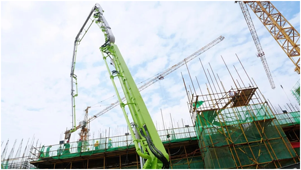 △中聯(lián)重科汕德卡底盤(pán)泵車(chē)在施工現(xiàn)場(chǎng)