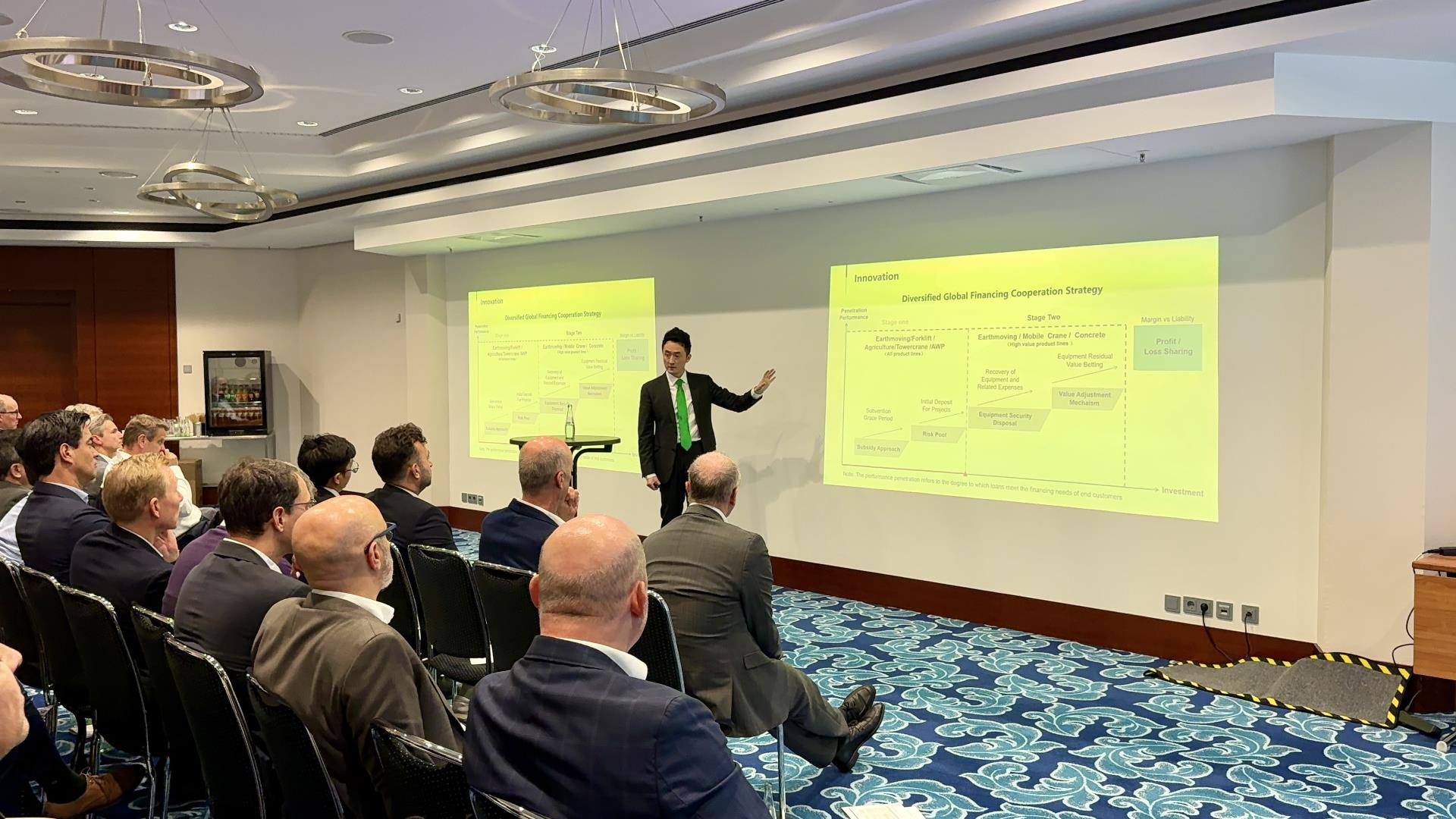 簽約儀式結(jié)束后,中聯(lián)重科金融業(yè)務(wù)部副總經(jīng)理顏昕博士應(yīng)邀出席了德意志租賃“全球合作伙伴峰會(huì)”(?Global Partner Solution),并在會(huì)上分享了中聯(lián)重科發(fā)展歷程、主要產(chǎn)品線及海外市場戰(zhàn)略。與會(huì)的德意志租賃全球各國總經(jīng)理紛紛表示期待與中聯(lián)重科在全球更多區(qū)域深化合作,實(shí)現(xiàn)互利共贏。